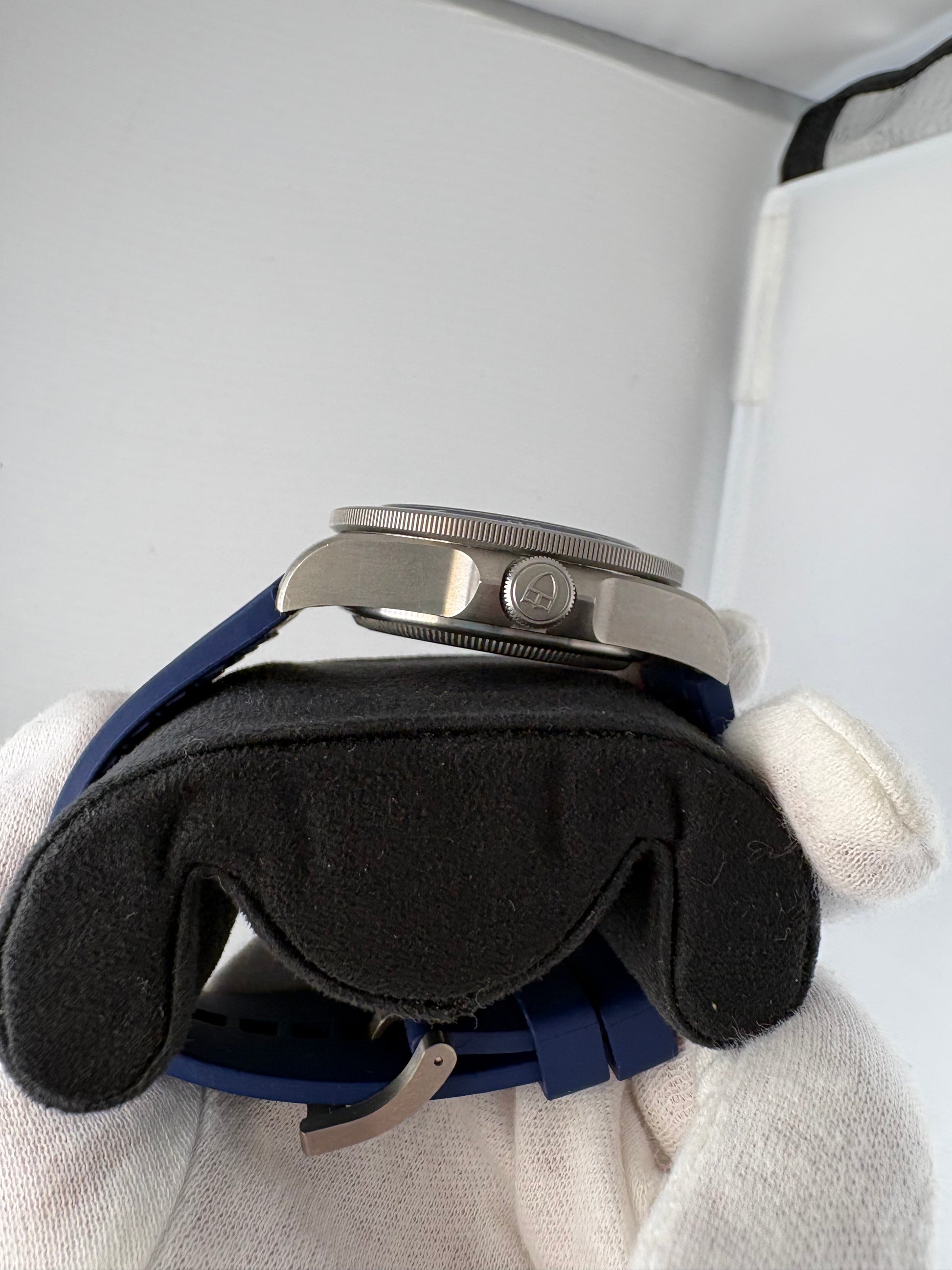 Bracelet/Strap: Currently fitted on the blue rubber strap. Original titanium bracelet is included (previously resized).